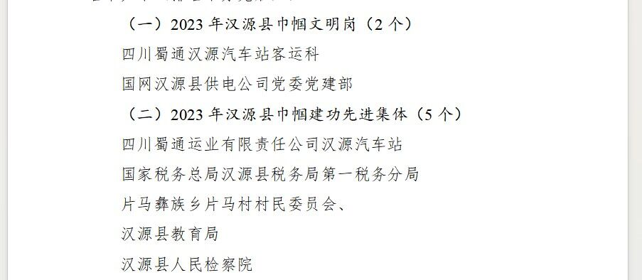 在“三八”国际妇女节来临之际,AG旗舰厅(中国)集团蜀通汉源汽车站被汉源县妇联评为“2023年汉源县巾帼建工先进集体”、“2023年汉源县巾帼文明岗”。